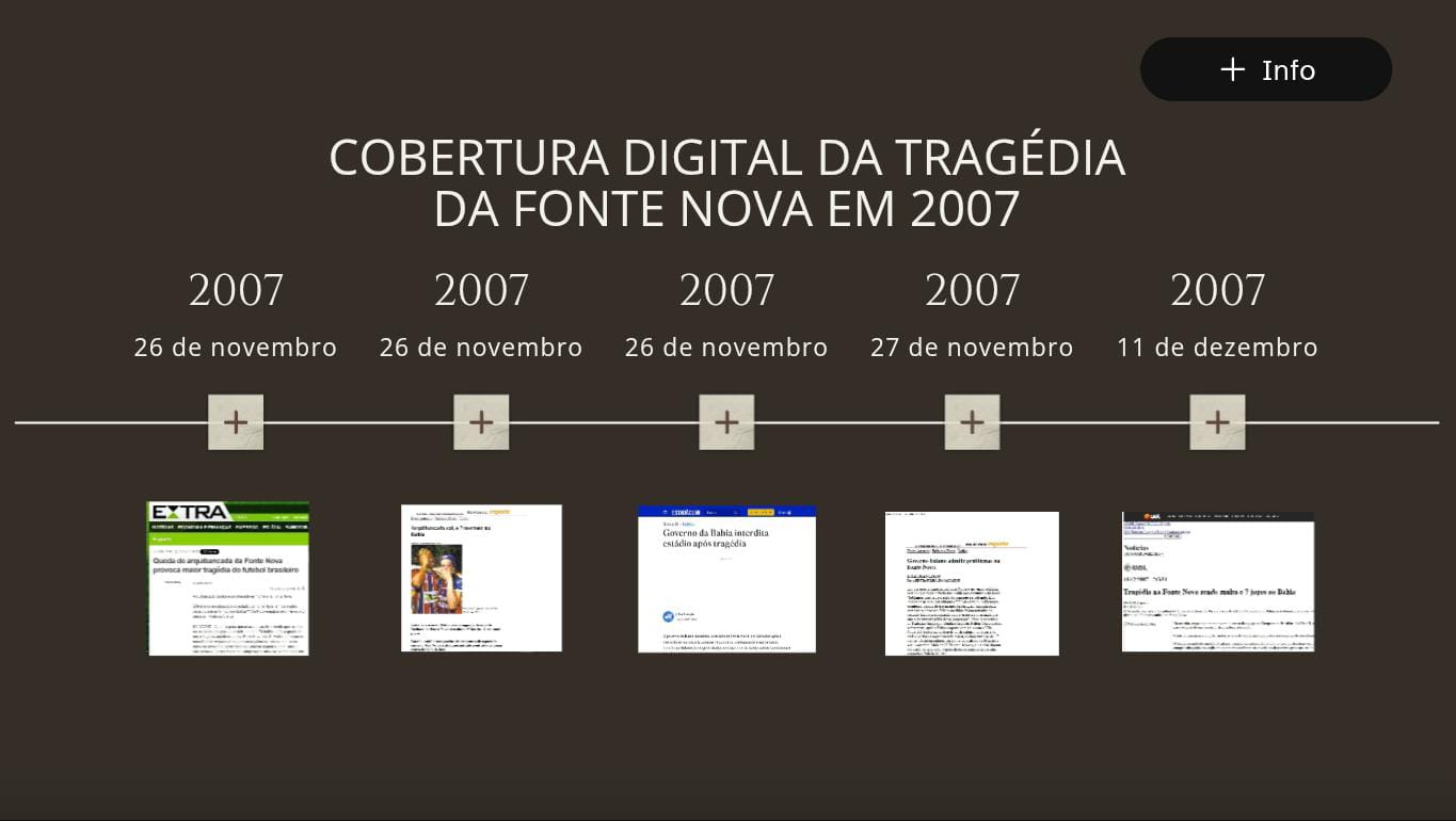 A cobertura digital, ainda que rudimentar, foi determinante para que o caso ganhasse projeção nacional. O site da Folha de S. Paulo, na manhã do dia 26 de novembro, estampou a manchete “Arquibancada cai, e 7 morrem na Bahia” . Além da Folha, outros sites de jornais locais e nacionais, além de blogs, publicaram reportagem de todos os desdobramentos sobre a tragédia no estádio Octávio Mangabeira, atual Casa de Apostas Arena Fonte Nova.