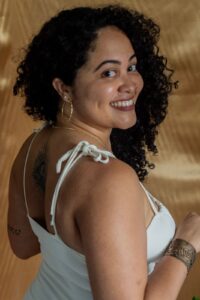 Caroline Anice transita entre a escrita, a psicologia, a mentoria e a pesquisa acadêmica como mestranda em Saúde da População Negra e Indígena da Universidade Federal do Recôncavo da Bahia. Mas é também, como ela mesma se define, “baiana de Salvador, sacerdotisa da palavra viva, mulher das águas e de axé”. A relação com a literatura começou cedo, com o incentivo de seus pais – com sua mãe sendo professora e seu pai sendo um grande contador de histórias. “Desde criança, fui nutrida pela leitura dos livros que minha mãe pegava emprestado da escola e pelas aulas de Redação no colégio, escrevia em diários, cadernos de poesia, depois passei a escrever em blogs e sempre presenteava e era presenteada pelos meus afetos com cartas e cartões”, conta a escritora.