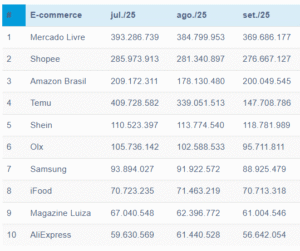 Maiores e-commerces no Brasil Fonte: Conversion (Agência Brasileira de SEO)