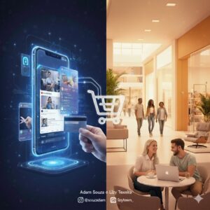 A ascensão do consumismo digital, impulsionado pela comodidade, desafia lojas físicas e shoppings a se reinventarem como espaços de experiência e convivência