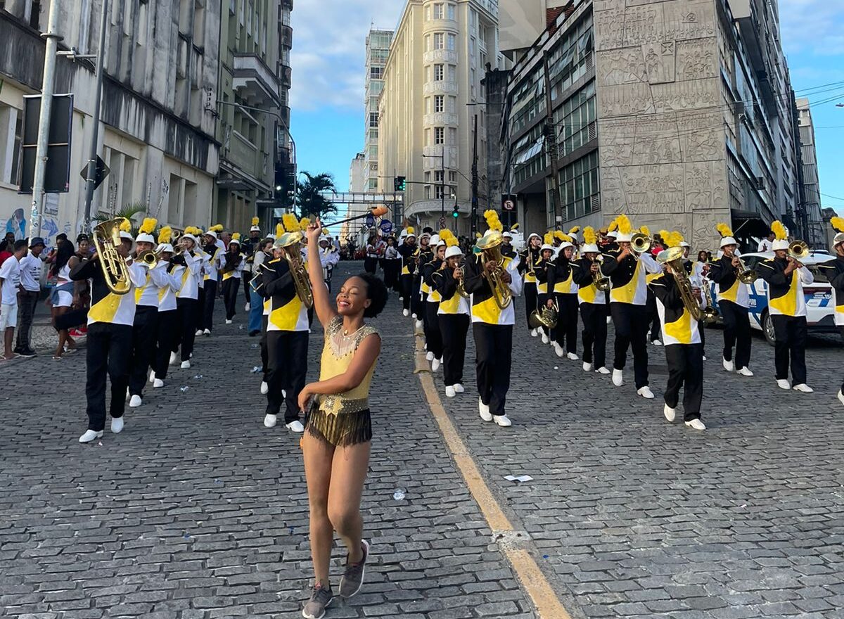 Outros participantes ativos do cortejo cívico são os estudantes de escolas estaduais. Pela manhã, cerca de 17 fanfarras e bandas marciais desfilaram da Rua Engenheiro João Pimenta, no Barbalho, até a Praça Municipal com seu corpo coreográfico, suas portas-bandeiras e suas alas de sopro e percussão. Pela tarde, mais 14 fanfarras brilharam na Praça Municipal.