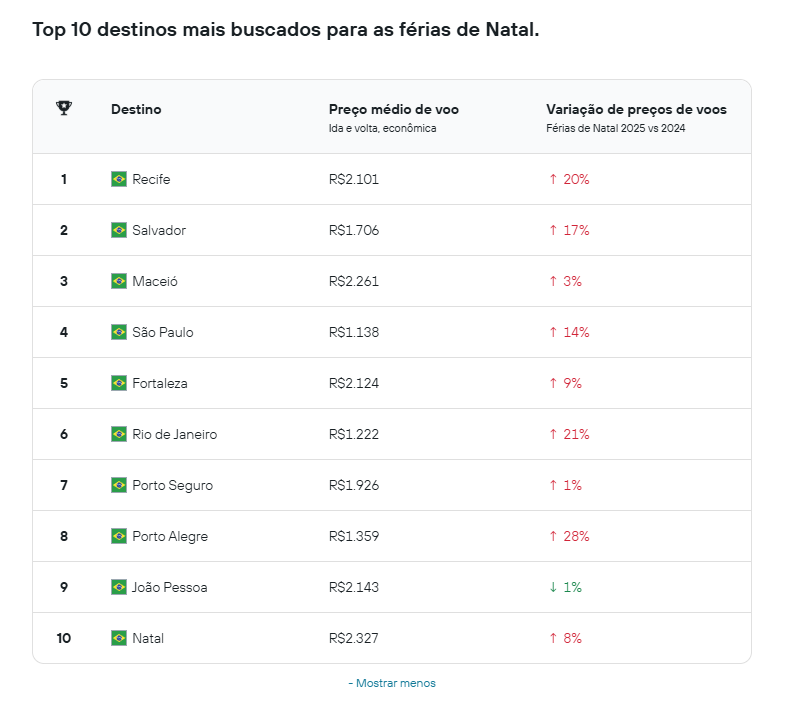 Salvador já se mostra um dos destinos mais desejados pelos turistas para passar as festas de fim de ano, que coincidem com o início oficial do Verão. A informação é comprovada pelo relatório do Kayak, um dos principais metabuscadores de viagens do mundo, que coloca a cidade como o segundo destino mais procurado do Brasil para o período, atrás apenas de Recife (PE), superando cidades como Maceió (AL), São Paulo (SP), Fortaleza (CE) e Rio de Janeiro (RJ). Em sétimo lugar ainda figura a cidade de Porto Seguro (BA), que fica na frente de Porto Alegre (RS) e João Pessoa (RS) no “top 10” do ranking. A pesquisa é baseada em buscas realizadas entre janeiro e setembro deste ano, feitas por brasileiros que desejam viajar entre 20 de dezembro e 10 de janeiro de 2026.